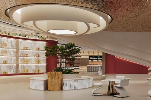 中心內(nèi)部規(guī)劃九大功能區(qū)域,包括接待區(qū)、宣傳展示區(qū)、文創(chuàng)產(chǎn)品展區(qū)、“佳木斯禮物”專區(qū)、漢服體驗(yàn)區(qū)及閱讀區(qū)等,全方位滿足游客多元化需求。設(shè)計(jì)上以中性灰與暖白色為基調(diào),通過杏朱色立柱與木色裝飾點(diǎn)綴中式韻味,同時(shí)融入赫哲族圖騰、魚皮文化等傳統(tǒng)元素,結(jié)合現(xiàn)代簡約風(fēng)格,形成冷暖交融、古今輝映的視覺體驗(yàn),成為展示城市魅力的“文化窗口”。