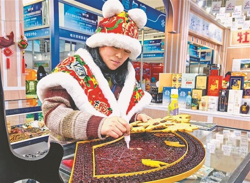 本屆展會展覽面積達(dá)1.2萬平方米,設(shè)置五大特色展區(qū)——“創(chuàng)意設(shè)計展區(qū)”,聚焦文創(chuàng)、中醫(yī)藥、服裝服飾等領(lǐng)域,匯聚省內(nèi)50余家企業(yè)參展;“文化科技展區(qū)”,涵蓋數(shù)字文創(chuàng)、衛(wèi)星定位玩偶、VR/AR、數(shù)字研學(xué)、數(shù)字非遺等領(lǐng)域,邀請到人民中科、大慶思特等領(lǐng)軍企業(yè),以及哈爾濱工程大學(xué)、哈爾濱建筑工程學(xué)院等高校參與;“我省文旅產(chǎn)業(yè)發(fā)展成果展區(qū)”,以獨具特色、形象鮮明的黑龍江日報報業(yè)集團(tuán)和黑龍江出版集團(tuán)展廳為亮點,匯聚來自全省各市地創(chuàng)意設(shè)計、工藝美術(shù)、數(shù)字科技等領(lǐng)域的200余家企業(yè)參展,并特別設(shè)置“從延安到北安”紅色文化特展;“國際文化展區(qū)”,特邀俄羅斯哈巴羅夫斯克美術(shù)家協(xié)會主席伊利亞·葉夫根耶維奇·克爾尼茨基率領(lǐng)的新銳藝術(shù)家一行11人前來進(jìn)行藝術(shù)交流,同時還邀請到巴基斯坦、越南、蒙古國、伊朗、韓國等國家的20余家文化企業(yè)參展;“臺灣文創(chuàng)展區(qū)”,由22家文創(chuàng)企業(yè)展示具有國際設(shè)計理念的珠寶首飾作品和特色工藝美術(shù)品,包括紅珊瑚、朱砂、和田玉、天珠等數(shù)百種產(chǎn)品。